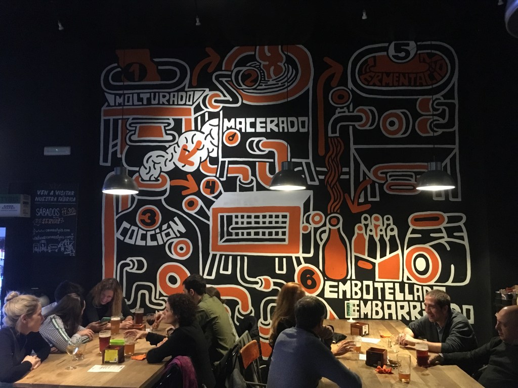 Outside, in the fresh 20-degree warmth of a late January evening (the place opens at 6pm and immediately fills), a clientele of multinational English speakers with American accents teach each other tongue twisters (“She shells she sells sea sells… Nope. Wow, that is hard!“) and talk about their jobs in tech start-ups and their postgraduate studies. The vibe is mellow humble-bragging and the sense that you’re going to get glassed in the face if you look at someone the wrong way is notably absent. A homeless guy wanders through the tables, having sniffed out the whiff of possible loose trust fund change. He probably saw the price list and figured, ‘these people are packing wonga!’ Yes, for a Valencian bar, Tyris Craft & Creative Beers is globalism-embracingly expensive.